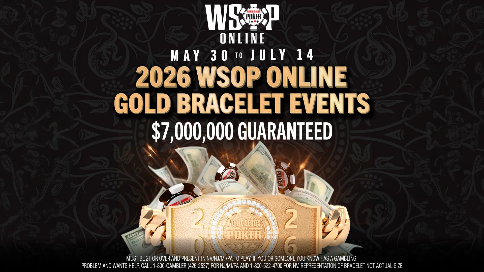 The schedule will run from May 30 through July 14, in parallel with the World Series of Poker, allowing eligible players in Nevada, New Jersey, Michigan, and Pennsylvania to compete for WSOP gold bracelets online.